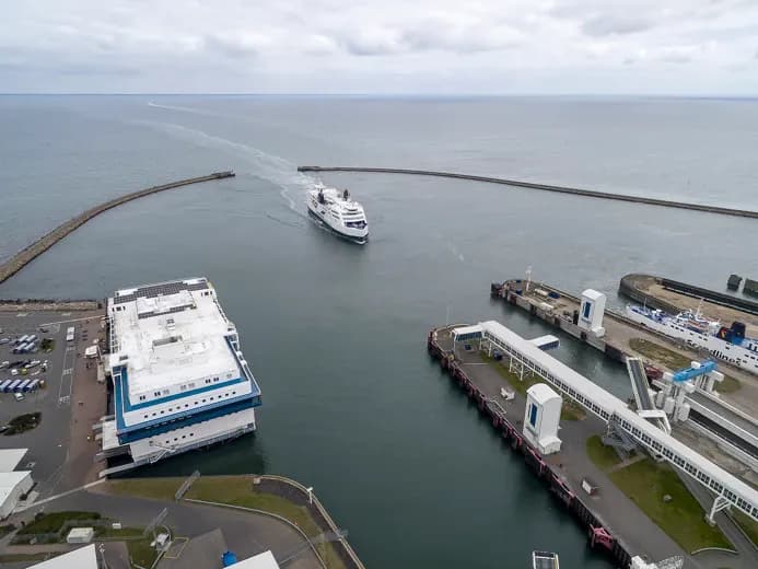 På sträckan Gedser–Rostock har vi sedan 2016 våra nyaste färjor i drift. Båda färjorna byggdes som hybridfärjor för att minska koldioxidutsläppen. Skrovet är särskilt utformat för den ganska grunda fartleden, vilket också sänker bränsleförbrukningen. Vi utrustade under 2020 og 2022 respektive to hybridfärjor med rotorsegel för att ytterligare minska utsläppen per resa.