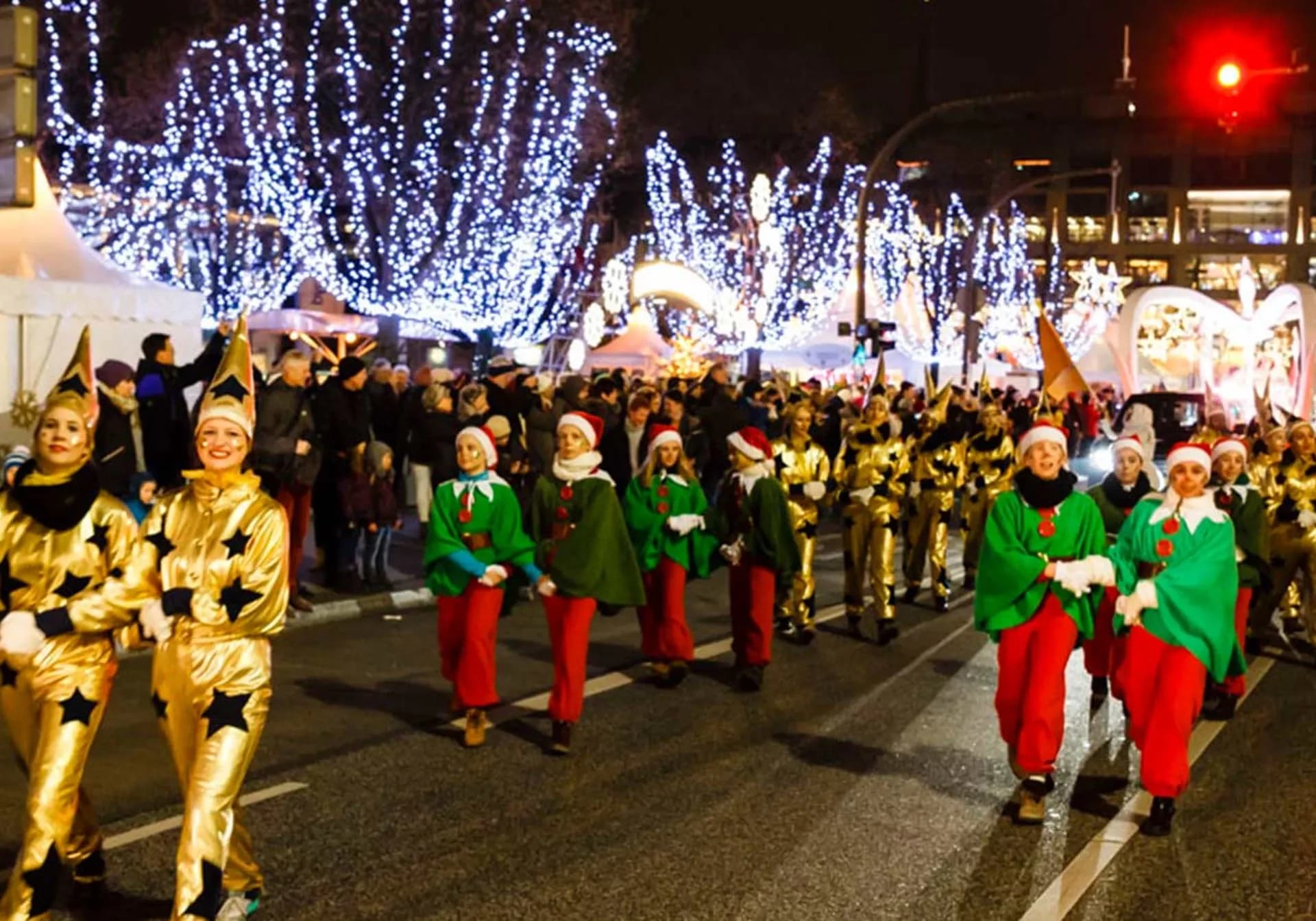 Här dansar jultomten och julgodis-figurer samtidigt som historiska vagnar, julleksaker och orkestern leder paraden genom staden. En färgstark och glad upplevelse, där hela familjen lär bli uppspelta över det festliga skådespelet.