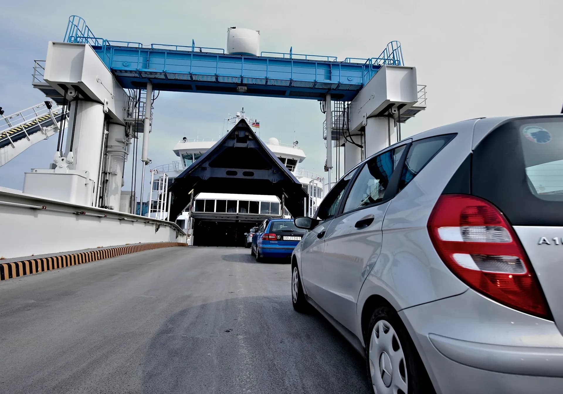 Köra på och av färjan på breda ramper